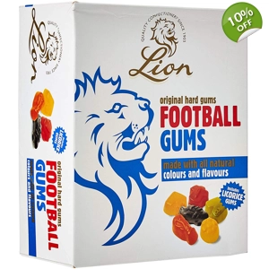 A full 2kg factory sealed box and that's a lot of football Gums / Sports Mixture aka Sports Mix/mixtures.Lion's gums are not suitable for vegetarians as they contain gelatine. Each cardboard box of Lion's Sports Mixture comes in a clear plastic wrapper and contains 3kg of Lion's assorted flavour fruit flavour gums plus the liquorice gums in a factory-sealed plastic bag. Colours/flavours are a random mix and do vary per batch.Ingredients in Lions Sports Mixture;