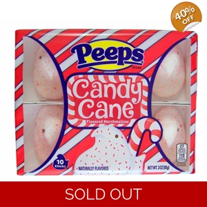 Seasonal special edition Candy Cane Peeps for the holidays with Crisp, Refreshing Peppermint Flavour White Chicks with Pink Speckles.