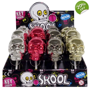 Skool Pop Lollipop Key Chains - Skull Head Keyring Candy Lolly Holder
