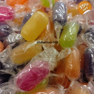 A Tasty traditional random selection of Fruity Flavour Boiled Sweets - Wrapped assorted fruit flavoured hard-boiled sweets with a crunchy fruit centre which are suitable for Vegetarians and Gluten-Free.